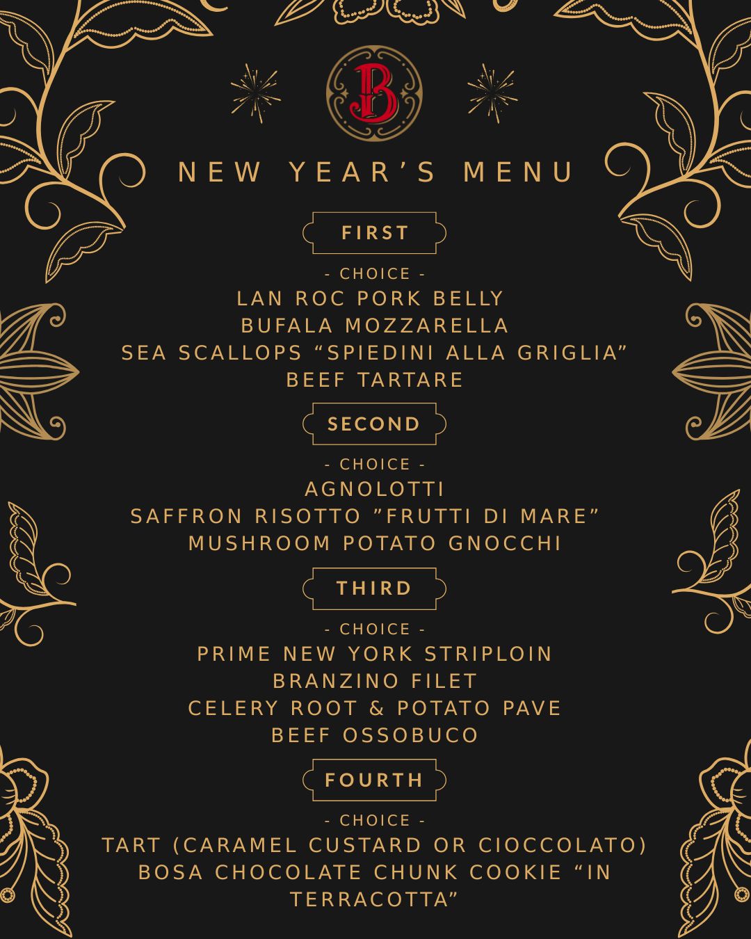 Ring in the New Year in true BOSA style with a decadent four-course menu*.